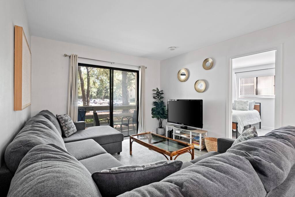 Tucked inside a gated resort community, this first-floor getaway combines the comforts of home with resort-style amenities: sparkling pools, tennis courts, playgrounds, and private beach access. Whether you are traveling with family, friends, or little ones in tow, this thoughtfully stocked condo makes it easy to relax, recharge, and create lasting island memories. Why You’ll Love It: Two spacious bedrooms with a queen bed, a bunk bed with a full-size bottom, and a trundle comfortably sleep up to six, giving families and groups plenty of room to unwind after a day at the beach. A bright and comfortable living room opens to a private balcony for breezy island views, and a well-appointed dedicated workspace makes it easy to balance business with pleasure. Convenience at Its Best: The primary bedroom offers the privacy of an ensuite bathroom with a recently renovated walk-in shower, while the guest bedroom enjoys a full bath with a shower and tub combo. A newly updated kitchen with premier finishes makes meals feel effortless, and the living room is set for downtime with YouTube TV ready for movie nights or the big game. Gas and charcoal grills are available on the resort grounds for fun family meals and timeless memories. Endless Fun: A very short and pleasant walk brings you to one of the best beaches in all of America, where soft sand and endless ocean views set the tone for your stay. Back at the resort, enjoy unlimited tennis, two sparkling pools, and a year-round hot tub that keeps the island vibe going long after sunset. Little ones will love the playground, and with beach chairs and gear ready to go, adventure is always within reach. When you are ready to explore, the shopping, dining, and entertainment of Shelter Cove and Coligny Beach Park are just minutes away. We are a family-owned property, and every detail has been designed to help you feel at home while soaking in the magic of Hilton Head. From sunrise walks on the beach to evenings under the palms, this is where relaxation meets connection, and where simple moments turn into lasting memories. Whether your perfect day is building sandcastles, chasing sunsets, or unwinding with a glass of wine after the kids are asleep, you will find it here. Your island getaway is waiting — claim it today and let the ocean do the rest.